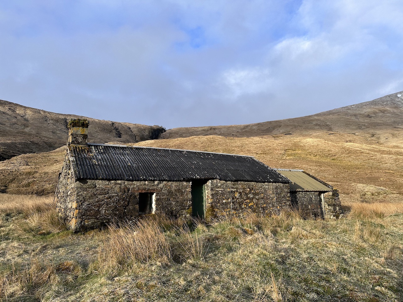 While we were up Meall a’Chaorainn talked about the bothy and a quick google suggested that the roof had been repaired. Since it’s no longer an MBA maintained Bothy and so remote we thought it would be worth a look…